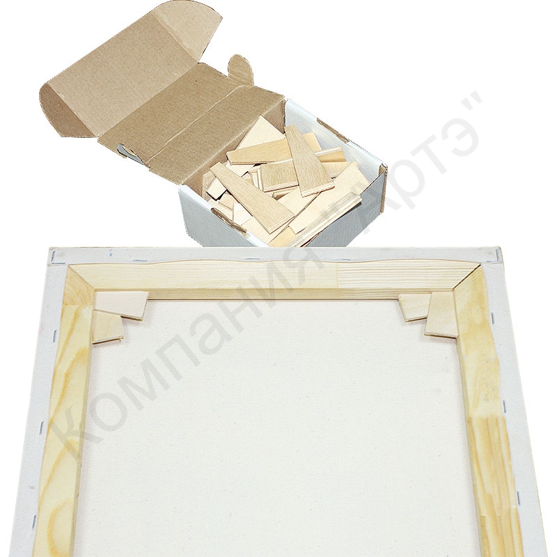Деревянные клинья предназначены для усиления натяжки холста на модульном подрамнике при его провисании. Вставлять клинья нужно скосами во внутрь подрамника под прямым углом.
