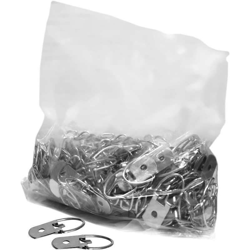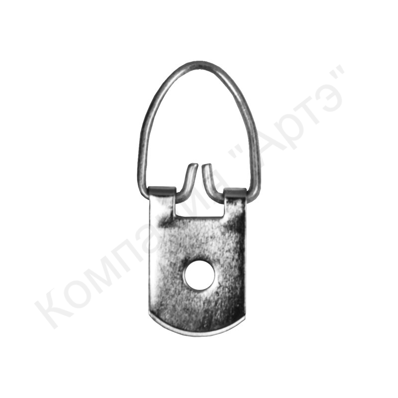 Металлическая подвесная пластина для картин и зеркал среднего веса. Прочная подвеска состоит из D-образного кольца, закрепленного на металлической пластине. Пластина крепится с помощью одного шурупа к рамам из дерева, пластика, MDF. Между подвесками протягивается трос, либо кольцо одевается на шуруп в стене.