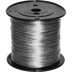 Плетеный стальной трос в намотке на катушке (бобине). Благодаря трубочному плетению очень прочный. В зависимости от толщины и количества сплетенных металлических нитей используется для подвешивания картин разной тяжести.