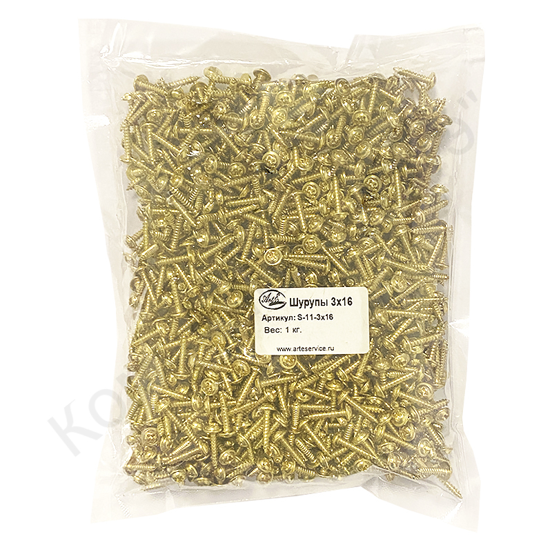 Шуруп – саморез с мелким шагом резьбы, с длиной ножки 16 мм, шириной - 3 мм. Имеет закругленную головку диаметром 7 мм, с крестообразным шлицем. Изготовлен из металла с высокой антикоррозионной стойкостью, прочный, антифрикционный.