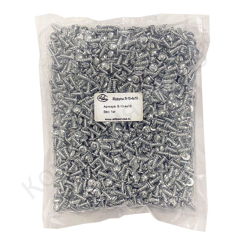 Шуруп с длиной ножки 10 мм, шириной 4 мм, диаметром головки 8 мм. Имеет мелкий шаг резьбы, круглую головку с крестообразным шлицем. Изготовлен из металла с высокой антикоррозионной стойкостью, прочный, антифрикционный.