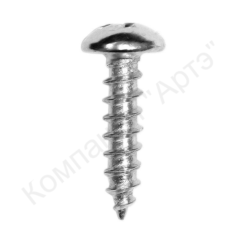 Шуруп – саморез с мелким шагом резьбы. Длина ножки 16 мм, ширина - 3 мм. Имеет закругленную головку с крестообразным шлицем. Диаметр головки 8 мм. Изготовлен из металла с высокой антикоррозионной стойкостью, прочный, антифрикционный.
