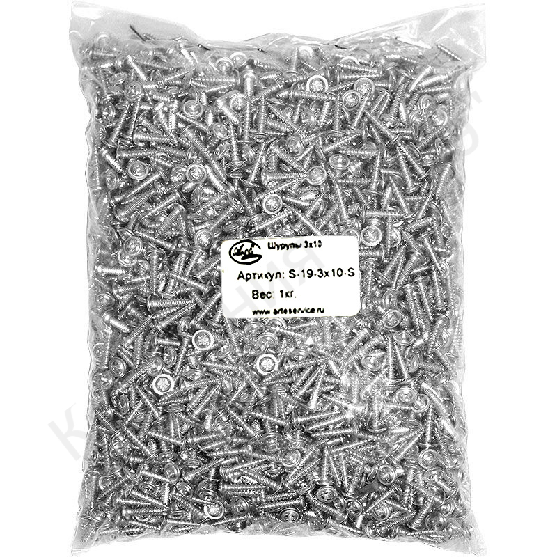 Шуруп – саморез с мелким шагом резьбы. Длина ножки 10 мм, ширина 3 мм. Имеет закругленную головку с крестообразным шлицем. Диаметр головки 7мм. Изготовлен из металла с высокой антикоррозионной стойкостью, прочный, антифрикционный.