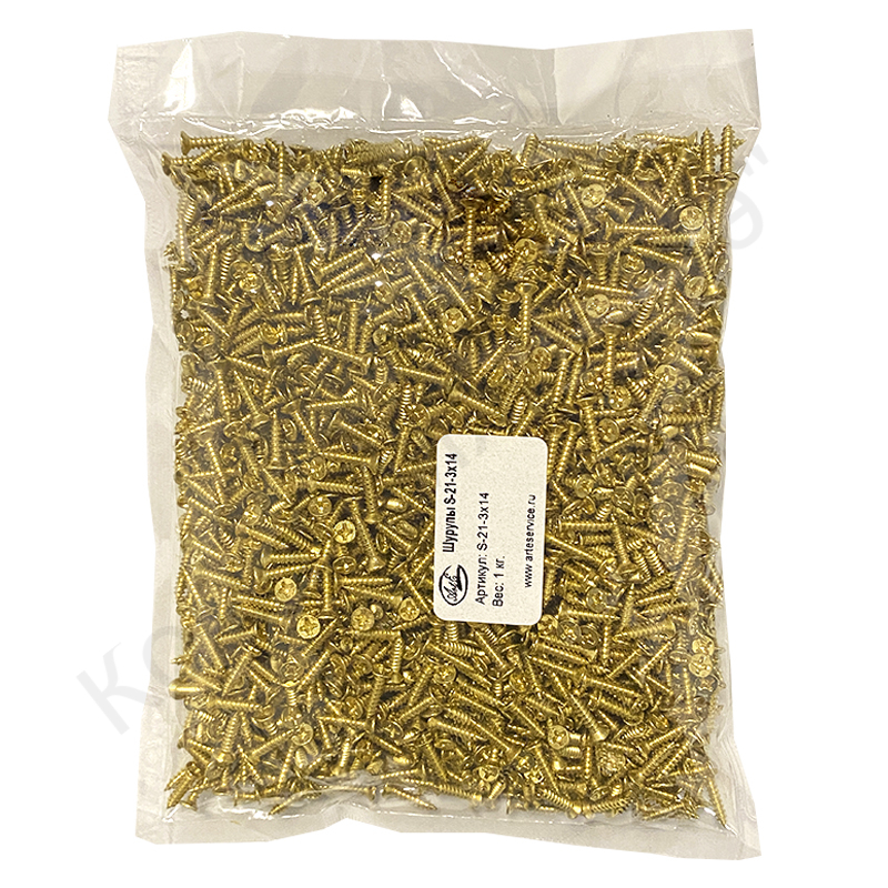 Шуруп с длиной ножки 14 мм, диаметром 3 мм. Имеет мелкий шаг резьбы, плоскую головку с крестообразным шлицем. Изготовлен из металла с высокой антикоррозионной стойкостью, прочный, антифрикционный.