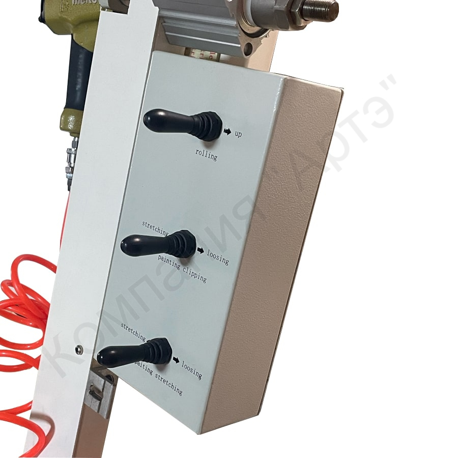 Этот станок для натяжки холста является лучшей пневматической машиной, которая натягивает полотно на раму и фиксирует его с помощью скоб. С его помощью можно натянуть на раму холсты различные видов. Станок прост в эксплуатации потому, что требует лишь нескольких простых шагов для завершения процесса натяжки холста, после чего холст будет натянут ровно и плотно. Кроме этого, станок имеет небольшие габаритные размеры, что позволяет его использовать в ограниченном рабочем пространстве.