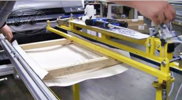 Станок для натяжки холста на подрамник. Предназначен для продуктивной работы в больших объемах. Удобный механизм фиксирует холст без прокалывания и обеспечивает равномерное горизонтальное натяжение. Оборудование имеет независимое и регулируемое давление натяжки. Пневмостанок подходит для натяжки всех видов художественных полотен: жикле - холстов с нанесением печати, холстов с нанесением маслянных и акриловых красок. Холст крепится с торца подрамника. Для закрепления холста Вам понадобится механический или пневматический степлер.