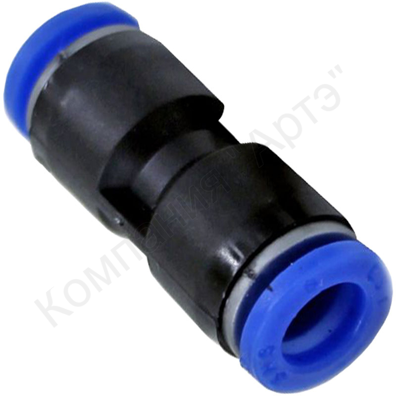 Фитинг-соединитель прямой, разъемный. Из ударопрочной жесткой пластмассы, с металлическими фиксаторами шланга. Подходит для соединения трубок ПВХ диаметром 8 мм. Цанговый переходник применяется для развлетвления воздуховода пневмосистемы.
