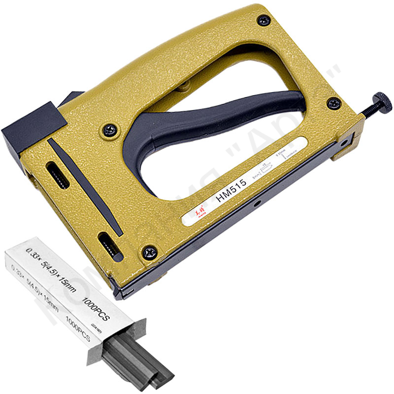 С помощью этого пистолета стрелки плотно прижимают задник к раме, при этом их специальный материал, не теряя своих свойств, позволяет многократно и без усилий заменять вставки, отгибая стрелки и прижимая их обратно.