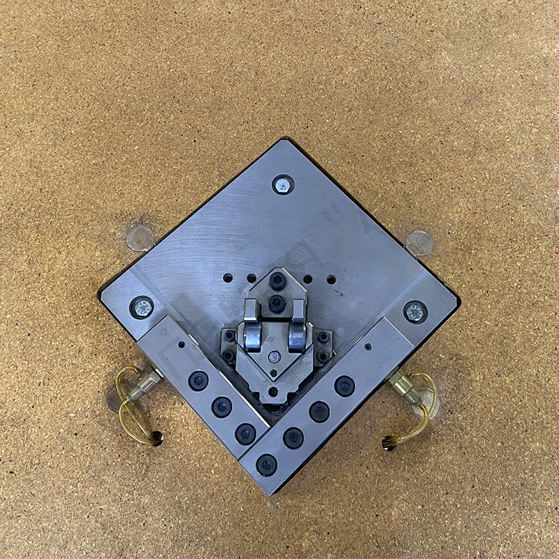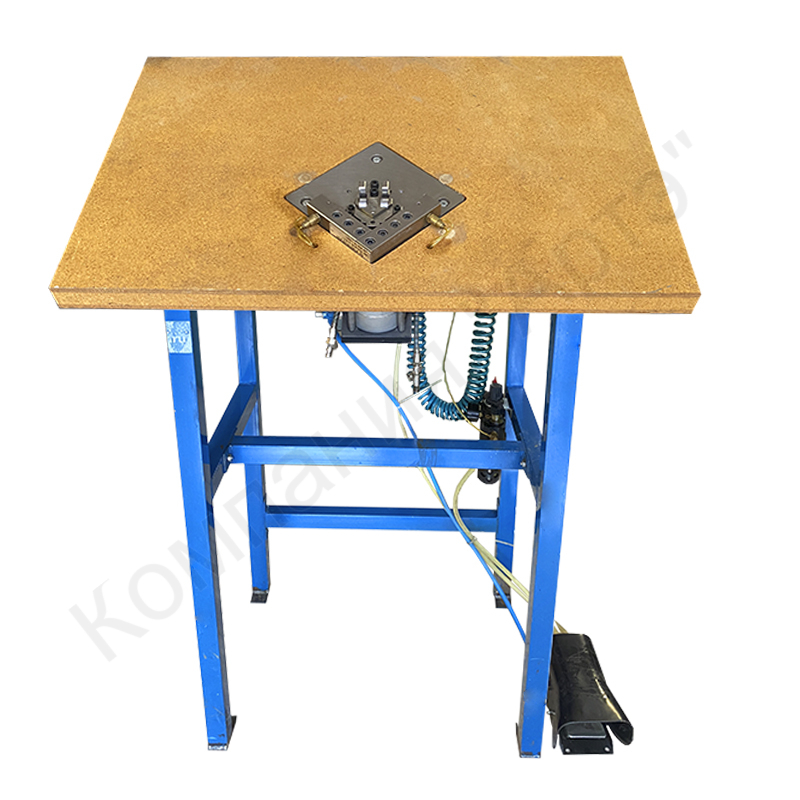 Пневматический станок c ножным приводом предназначен для скрепления углов алюминиевых рамок размером от 12,7x12,7 см.