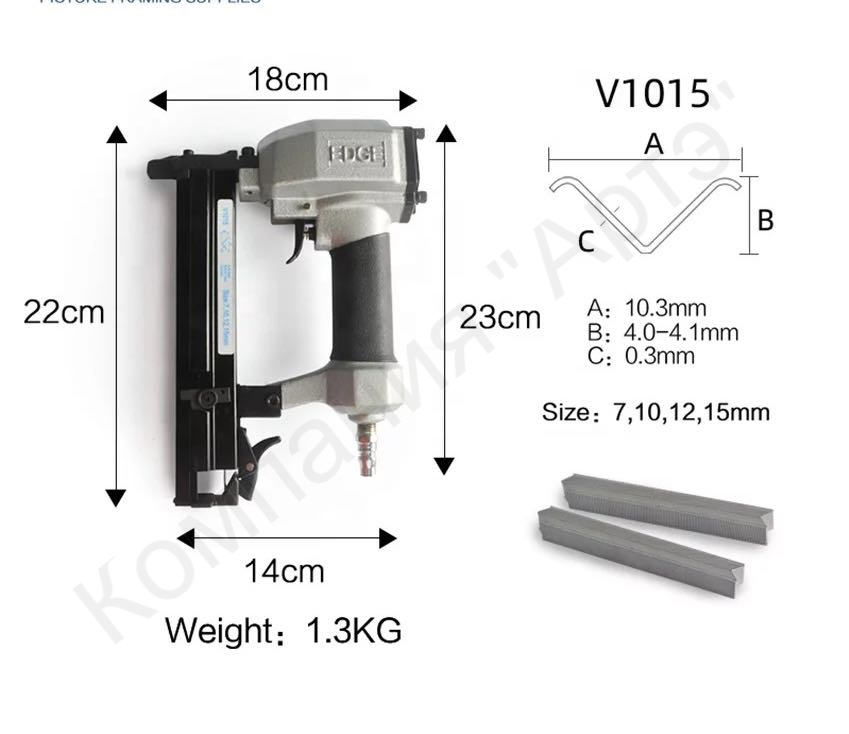 Пневматический скобозабивной пистолет EDGE V1015 используется для скрепления рамок, багетов, карнизов.