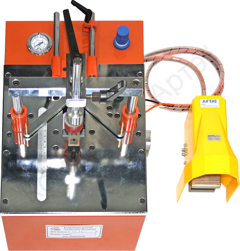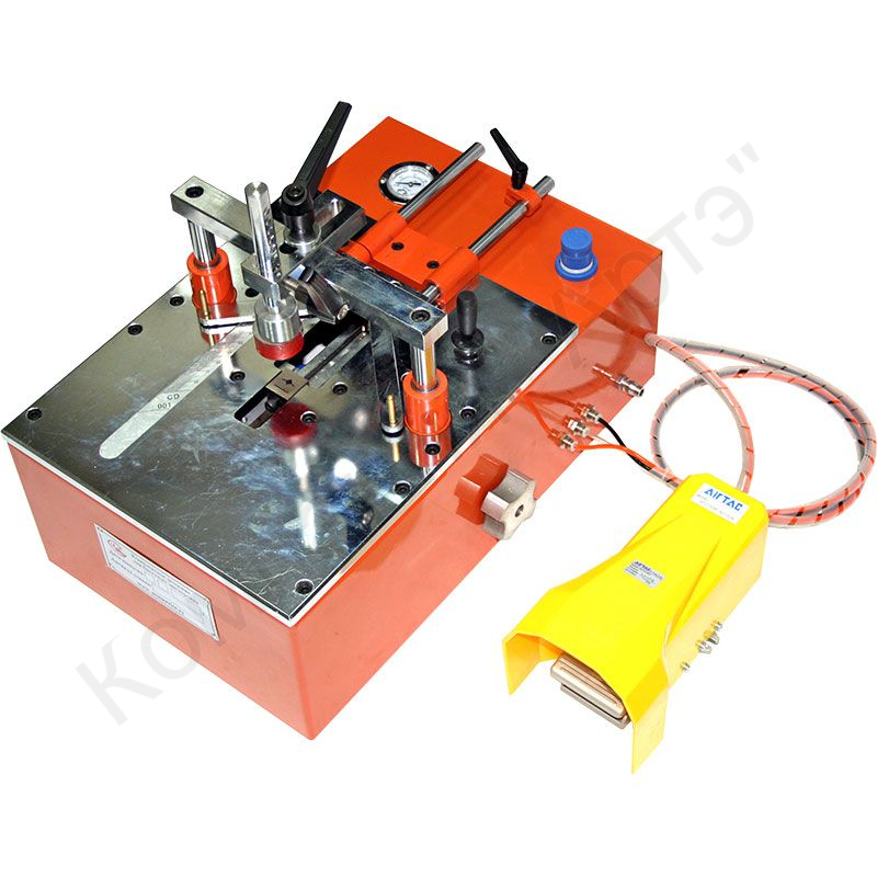 Фиксация угла рамы нажатием на пневмопедаль, а забивание V-скоб с помощью ручной гашетки.