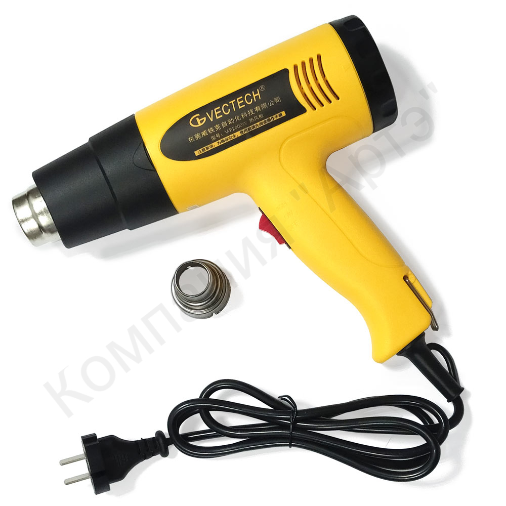 Технический фен для бытового и профессионального использования. Универсальный инструмент для применения в разных областях: удаления лакокрасочных покрытий и клея, для паяльных работ, формования пластика, прогреваБ размораживания труб, коррекция формы синтетических труб. Простой и удобный инструмент с необходимым минимумом функций. Тепловой пистолет имеет два режима работы, что позволяет подобрать необходимую температуру для работы с определенным материалом. Термопистолет отличается эргономичностью и безопасностью в эксплуатаци. В комплект входит насадка - понижающее сопло с суженной частью для работы в углах или концентрации теплового излучения на меньших поверхностях.