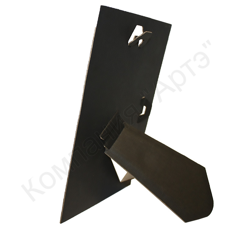 Картонный задник с ножкой используется при изготовлении фоторамок. Он имеет ножку и специальные отверстия для подвешивания, благодаря чему возможно как горизонтальное, так и вертикальное расположение. Разместить рамку можно будет не только на столе, но и на стене. Угол наклона ножки можно регулировать, для этого имеються специальные проушины.