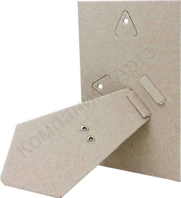 Картонный задник с ножкой используется при изготовлении фоторамок. Он имеет ножку и специальные отверстия для подвешивания, благодаря чему возможно как горизонтальное, так и вертикальное расположение. Разместить рамку можно будет не только на столе, но и на стене. Угол наклона ножки можно регулировать, для этого имеються специальные проушины.